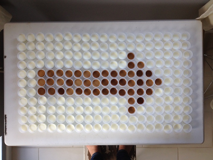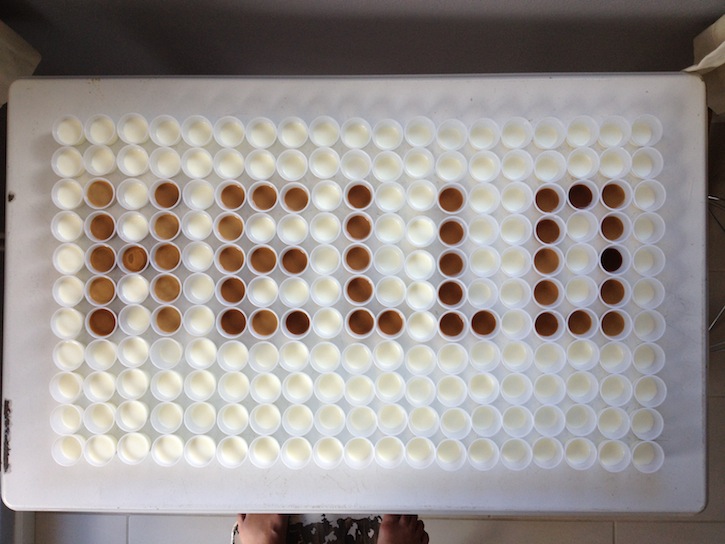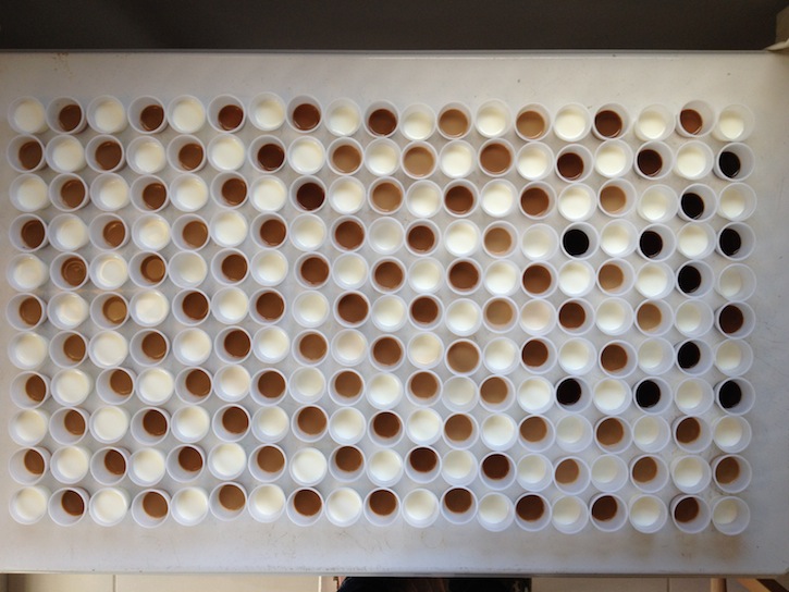 This is much more contemporary than Hirst’s dots of paints. Don’t we all depend upon a milky coffee to get us through the day? especially on a Monday! You are two artists of originality and fun. Thanks.