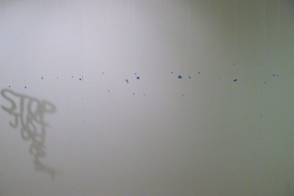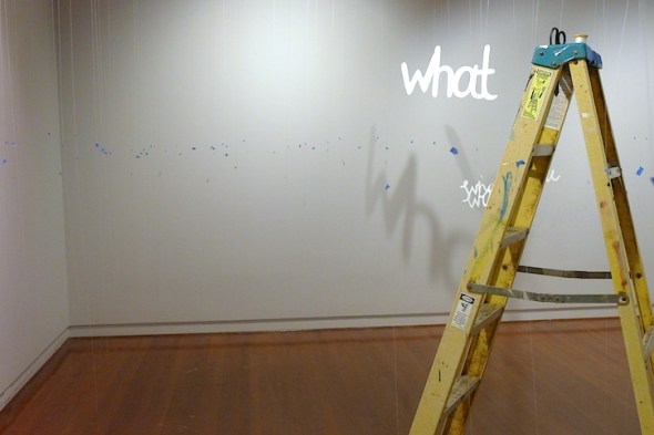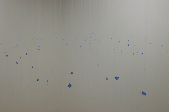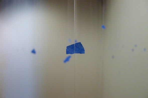 Spent the weekend installing our collaborative exhibition at Honolulu Museum of Art in Honolulu, Hawaii. The blue tape is just part of prep work, but I liked the way it looked.