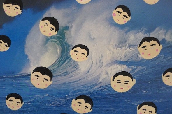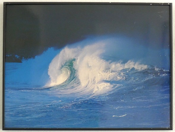 Two 20 x 10″ framed photos from the thrift store and gouache.