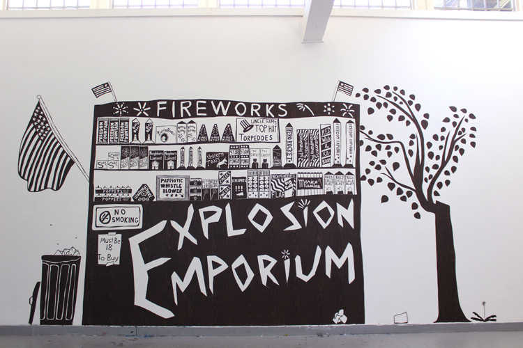Contact paper cut-out site-specific installation at Yaddo. Approximately 8.5′ high x 14′ wide.