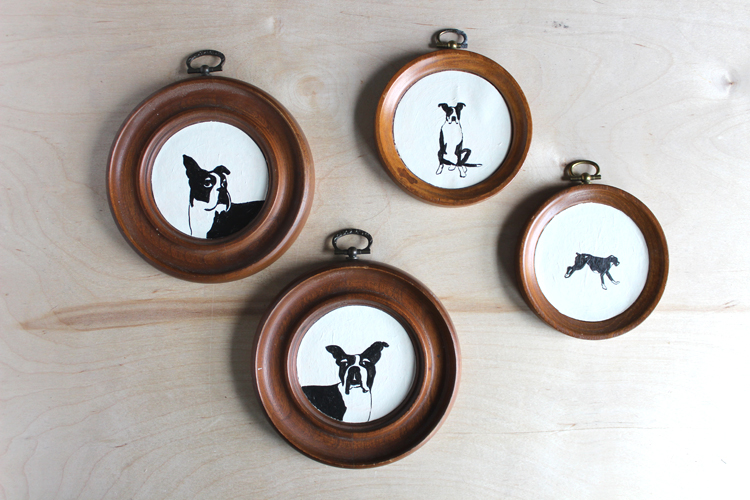 2.75″ diameter teeny tiny acrylic portraits of my dog, Gretta.